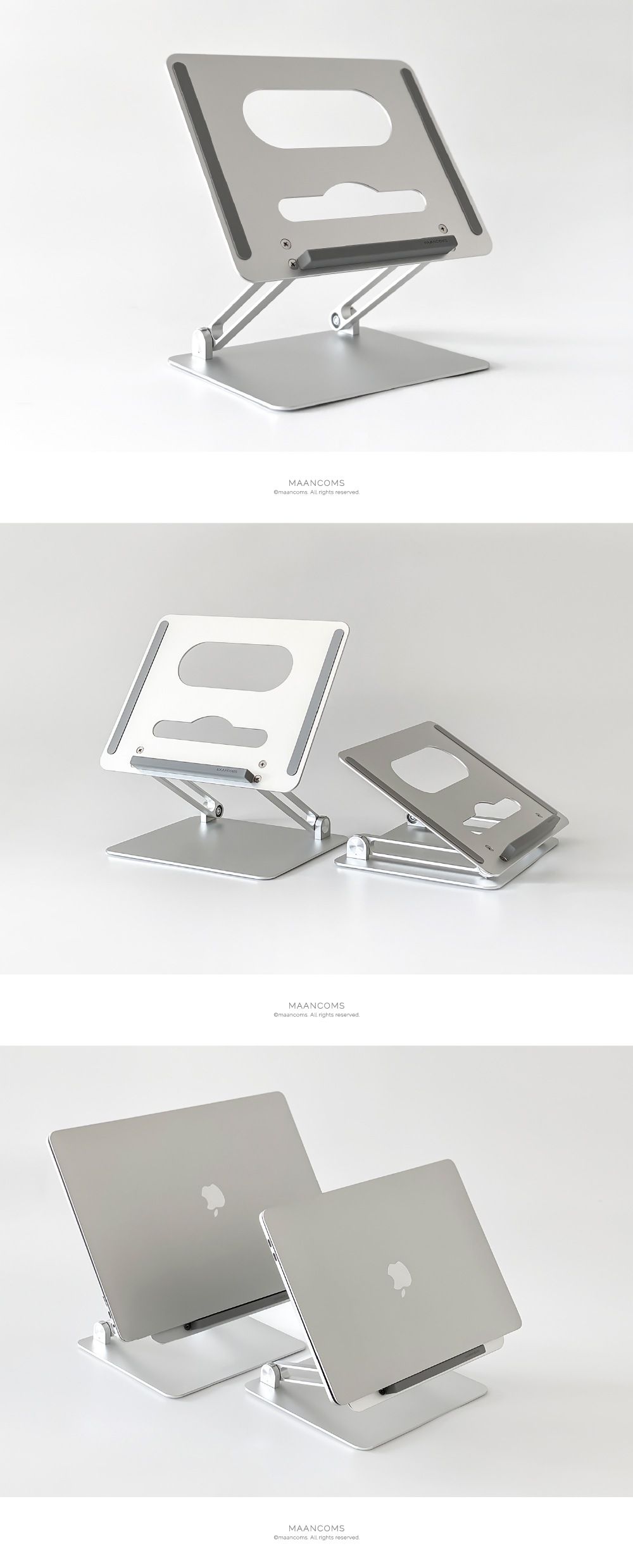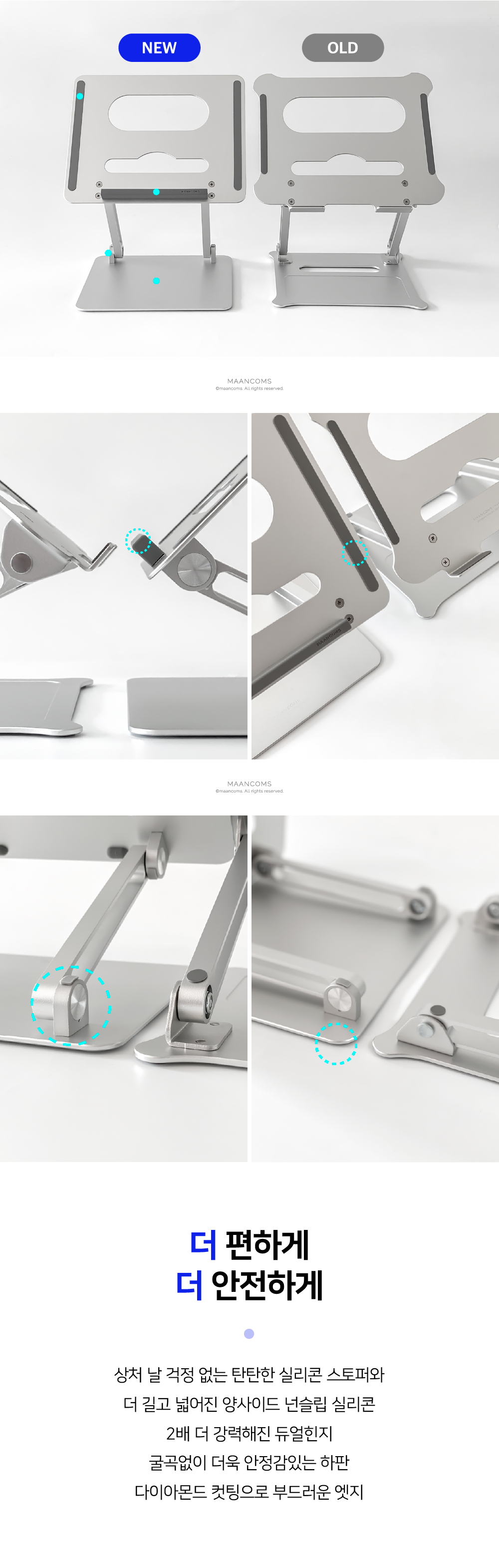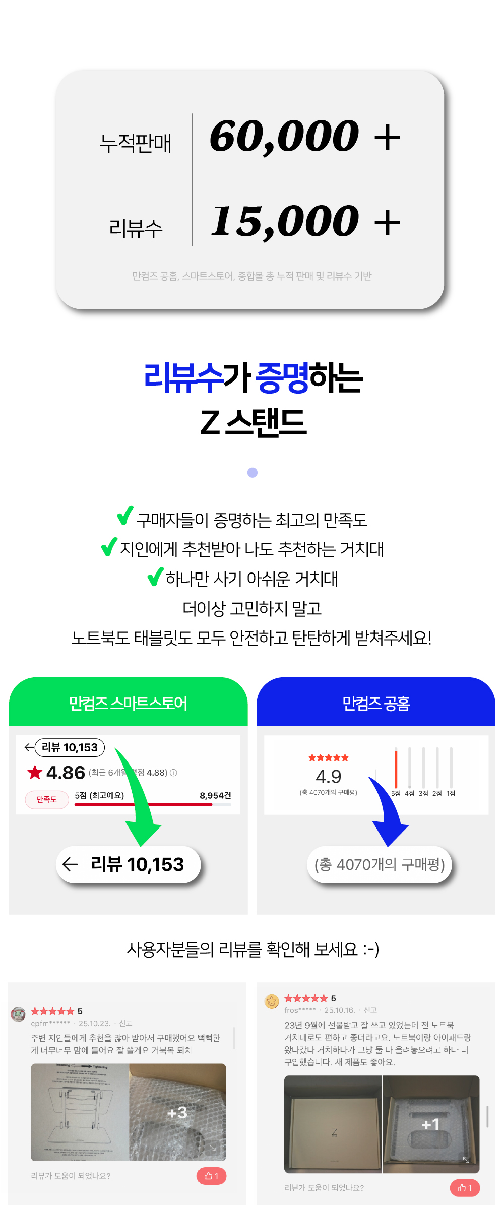 누적판매 60,000건에 빛나는 국민 노트북거치대높이와 각도 모두 자유롭게 조절되는 폴딩형 스탠드로노트북은 물론 각종 태블릿PC를 내 눈높이에 딱맞게 조절해편안한 자세와 안정적인 작업환경을 제공합니다.