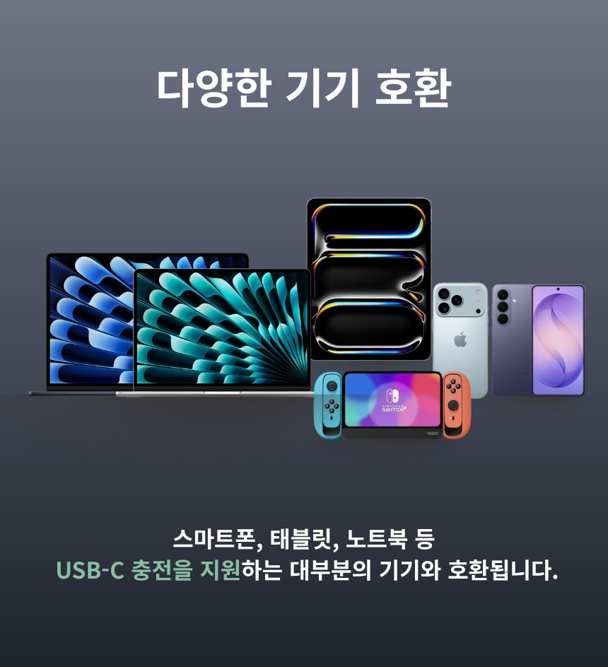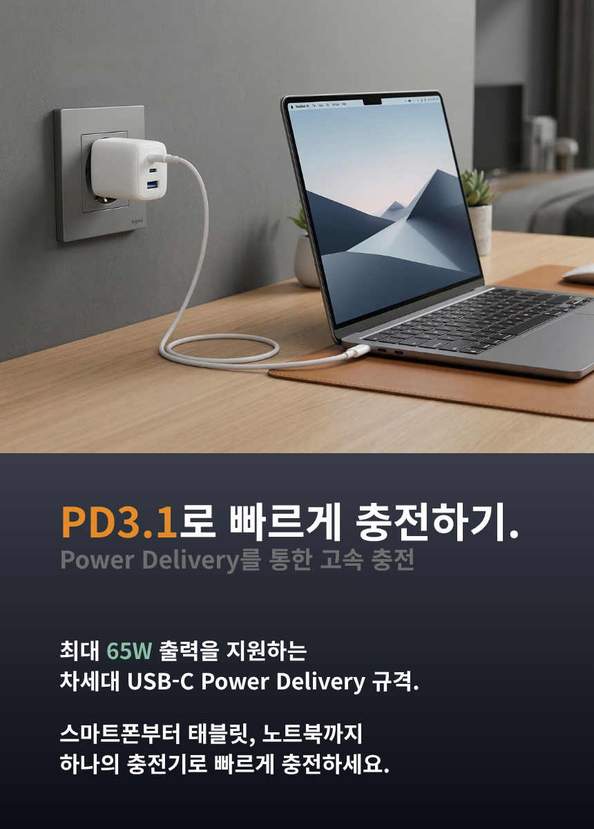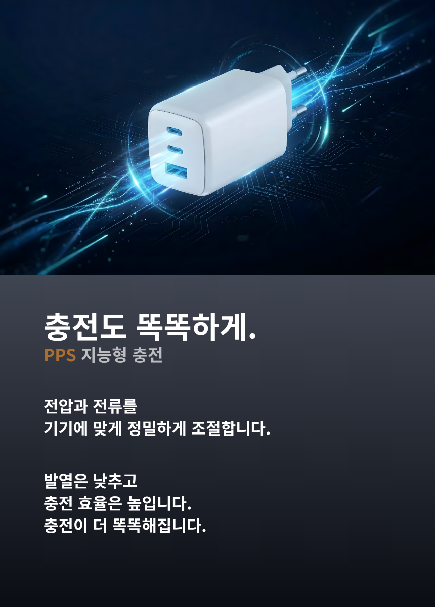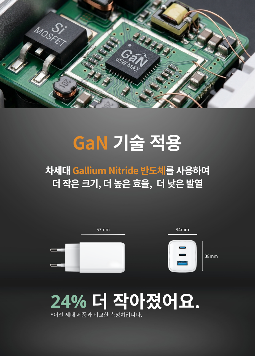 - 최신 GaN 칩 사용으로 더 작고 안전하게