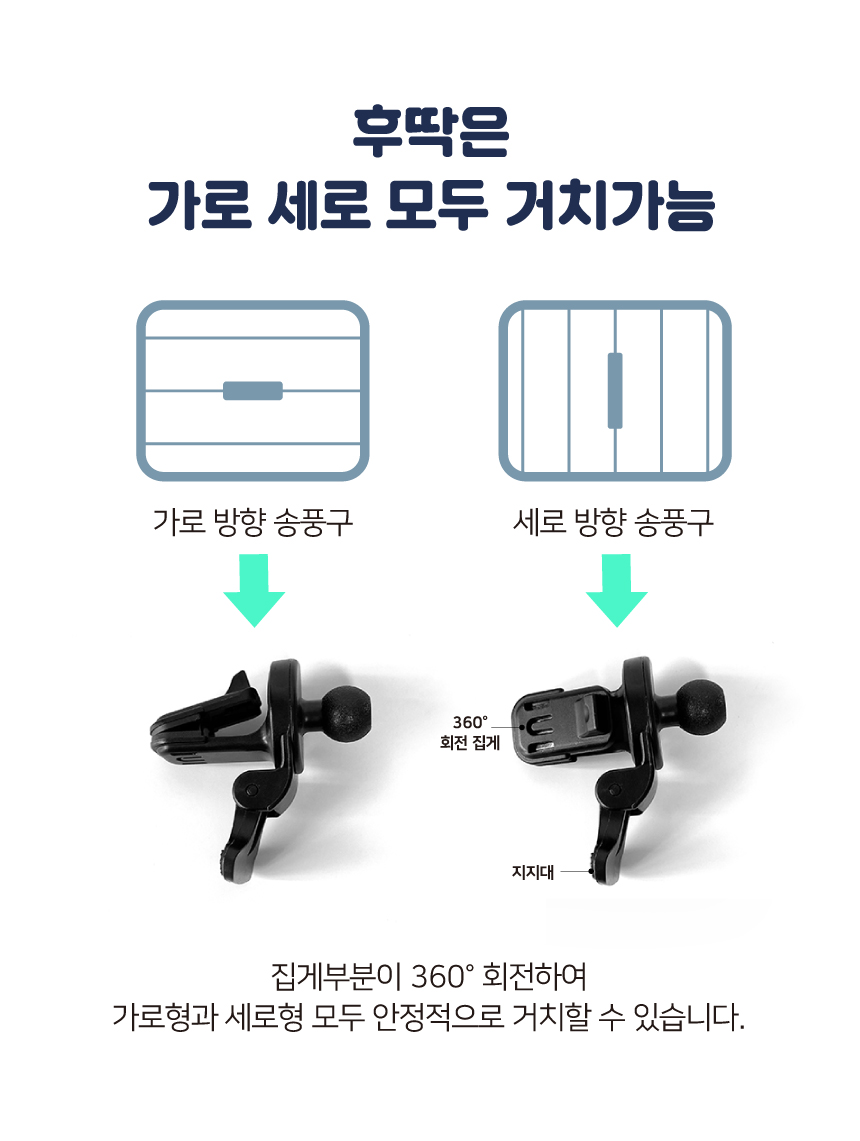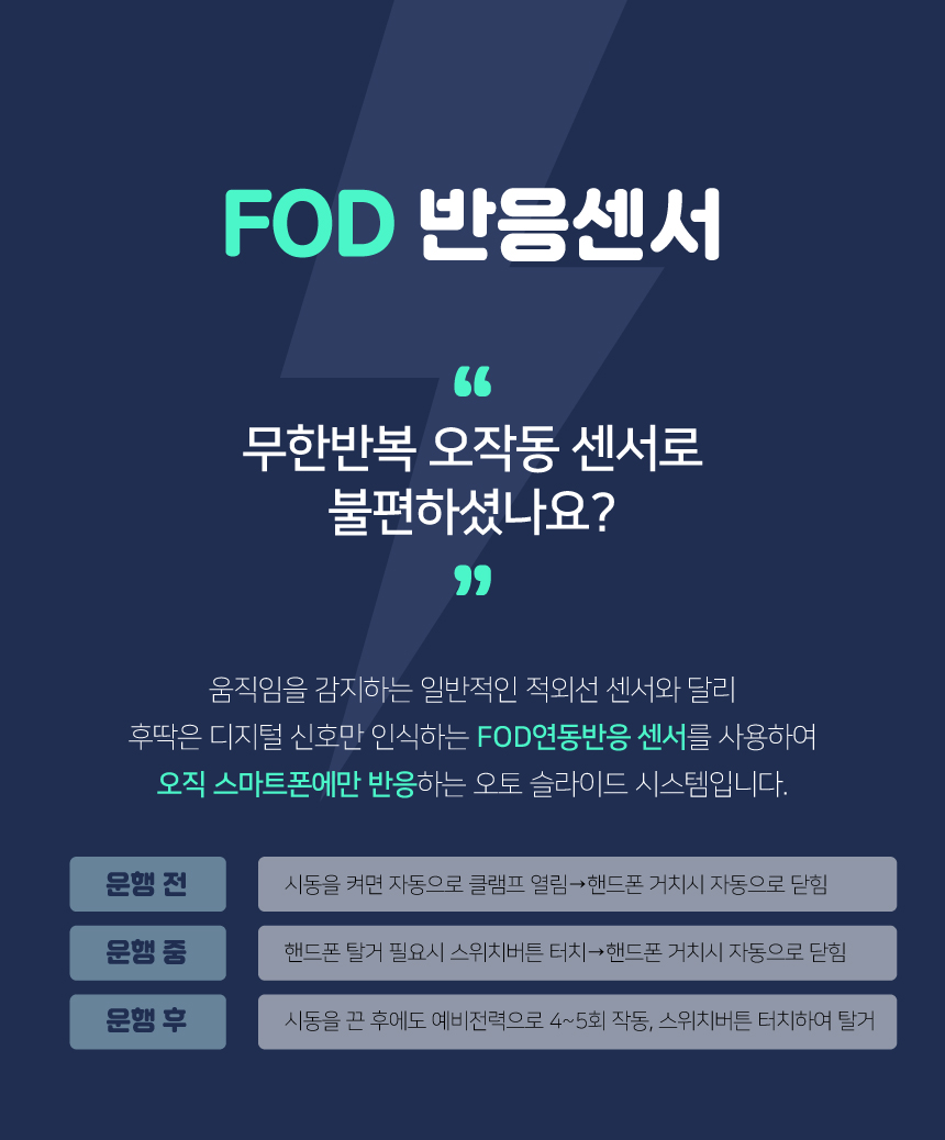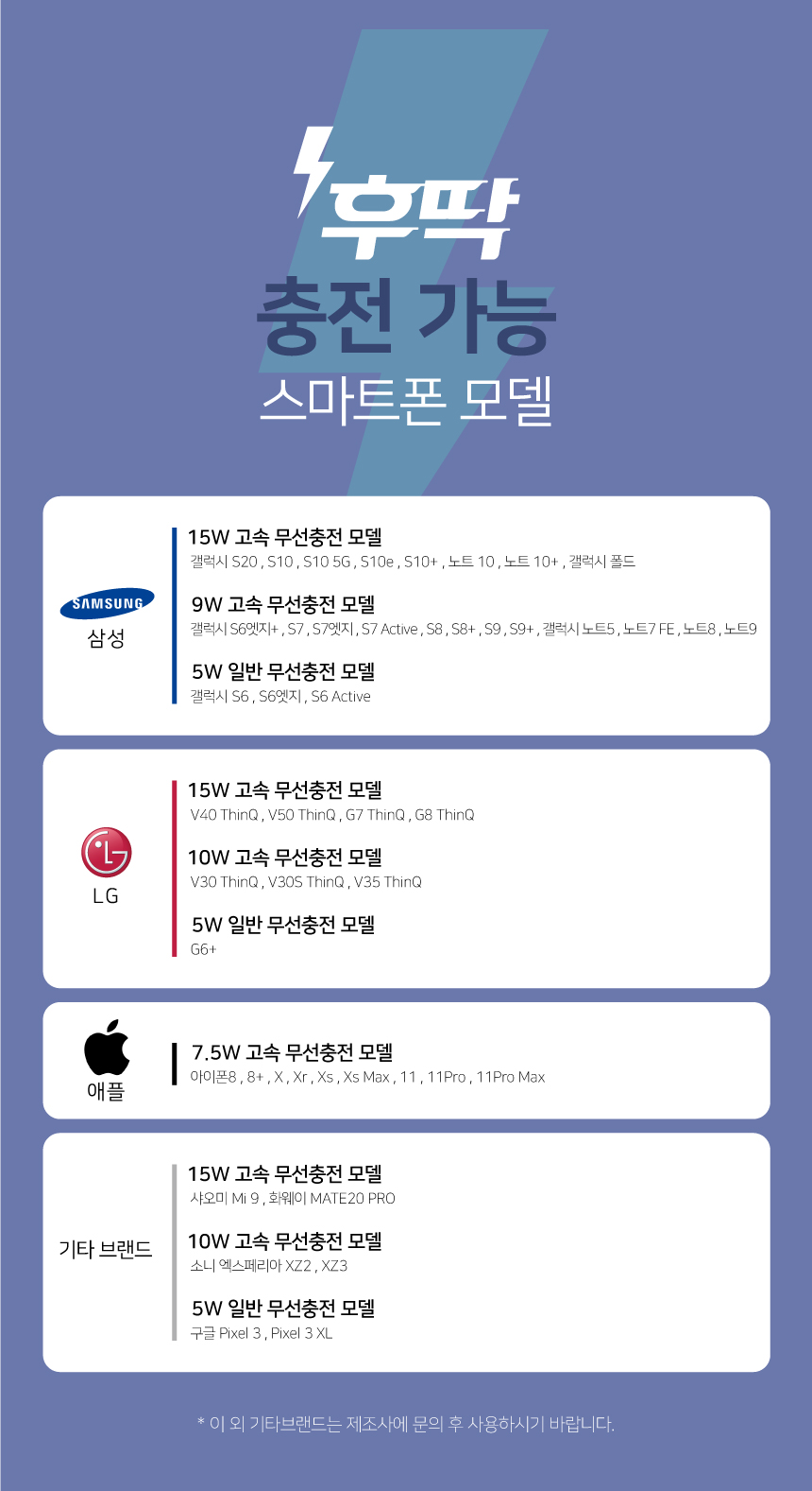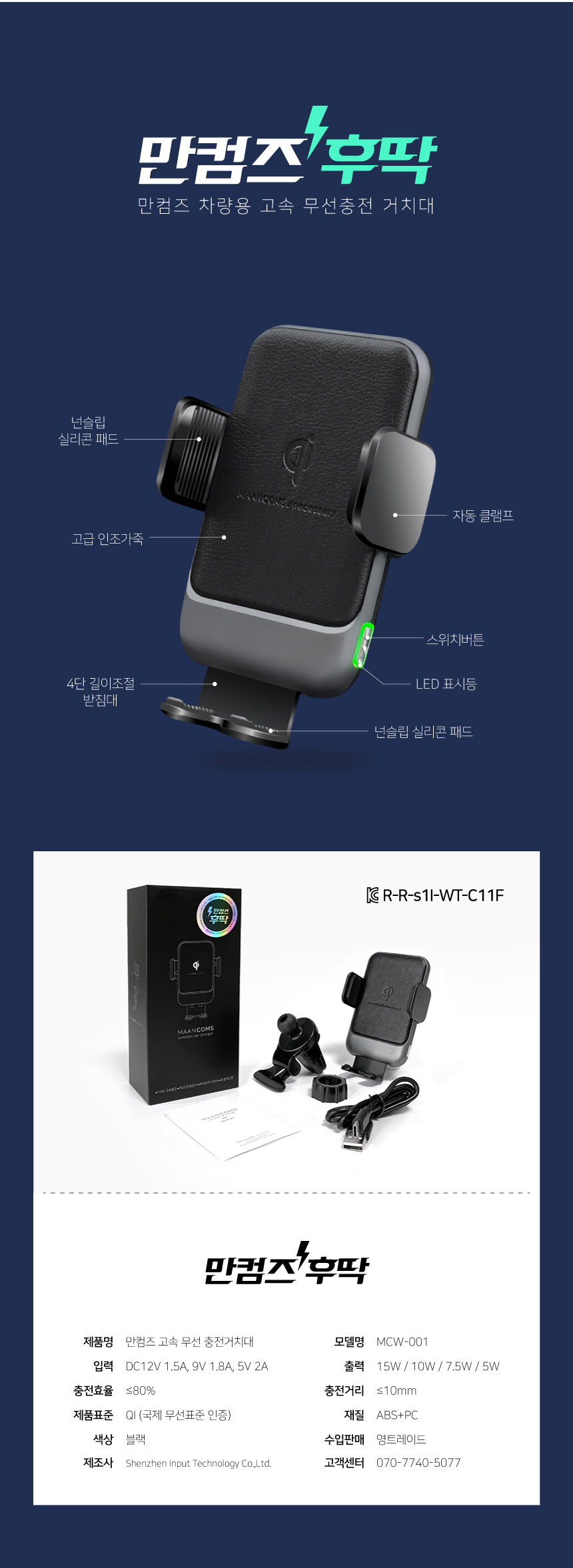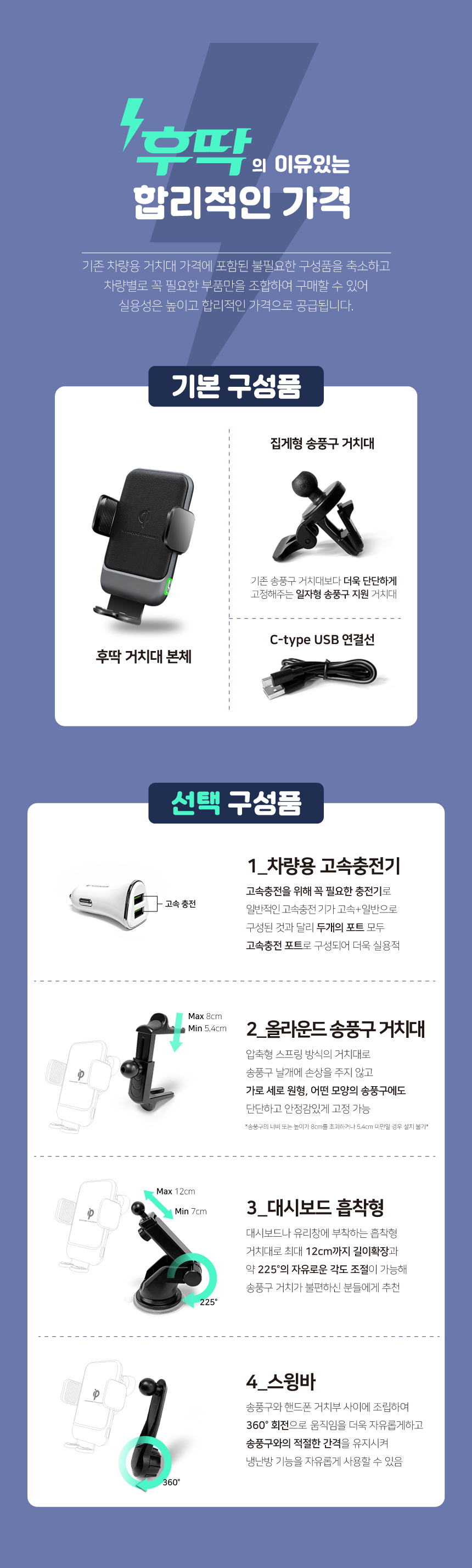 15W 고속충전으로 운전중에도 후딱 충전!저소음모터와 FOD반응 센서, 다양한 거치타입 지원으로내 차에 꼭 맞게 후딱 고속충전